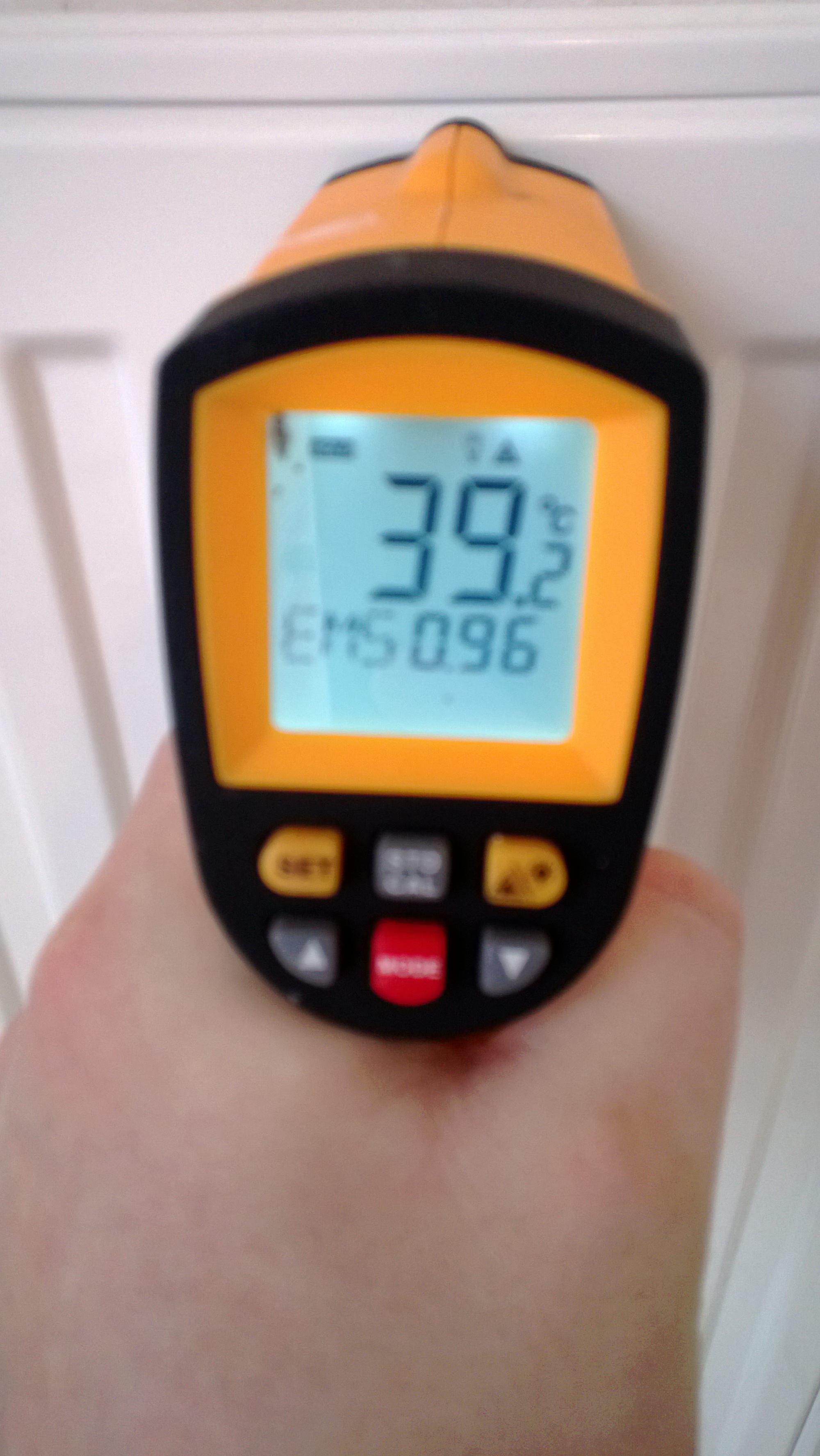 Температура радиатора в кухне.Радиатор выставлен на 4ку.Показатели в обеих квартирах одинаковы.